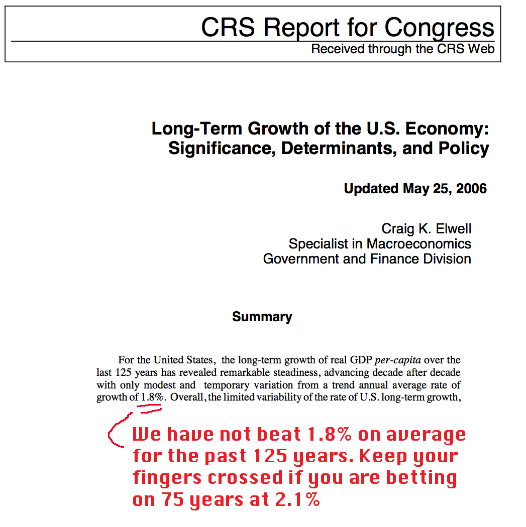 Now consider the following graph that includes the SS forecast for GDP over the next 75 years.