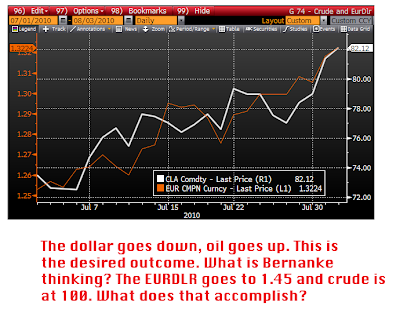 Another stimulating article, Bruce. You really pack the content into as few words as possible! I'm wondering if the idea of trying to get inflation by having oil rise won't just cause more deflation. I read for instance that an oil rise to $100 would break the back of the economy. Result of an increase in the price of oil would simply cause more businesses to close, more would-be consumers to lose their jobs and thus more depression. Bernanke et al must be getting desperate but they can't win, no matter what. I think Europe is doing better because the Germans are showing leadership, saying no to naked shorting, etc. They are trying to deal with accounting shenanigans and financial abuses, whereas the US continues to believe that deception works best.