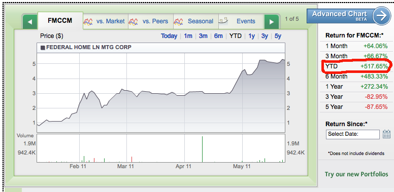 the list. The Preferred shares of both Fannie Mae and Freddie Mac have gone on a tear. They are up as much as 500%!