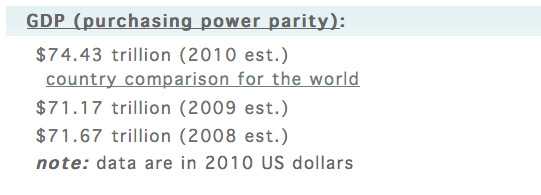Also, is dollar inflation factored into these numbers? If not, then the picture is even less rosy and may indicate that the global economy has yet to recover from 2008- which when I look around me, appears to be the greater truth.