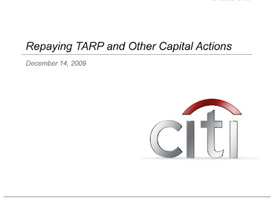 Citi took $25 b. And gave UST some paper shares in return. If they were repaying their TARP funds, they could buy it back from UST. Instead UST will go the market to sell the dilution to new suckers.