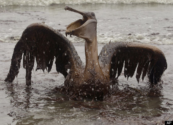 A pre-historic looking bird weighed down by 75 years of oil dependency.