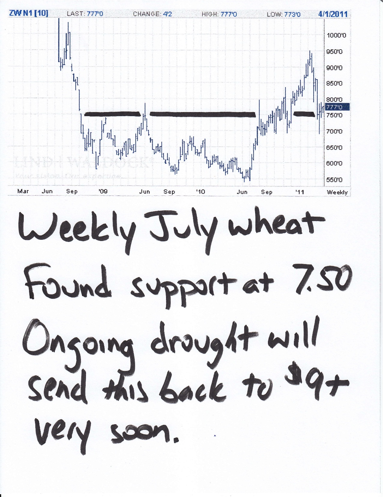 Now take a look at the chart. Long-term support held at $7.50 and wheat looks almost certain to catapult higher very soon.