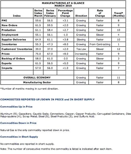 prices. ISM reports are showing this dynamic is in play. (Note: