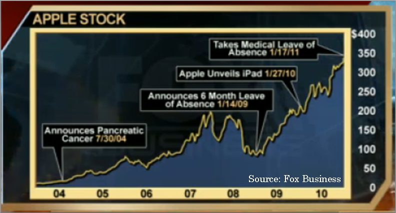 Every time when you have a top executive taking an extended leave for whatever reason, the company’s stock typically will take a beating. However, very few corporations have its image and creativity so deeply linked to its CEO such as Apple and Jobs.