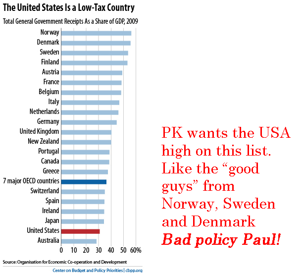 US citizens pay a low tax rate. Krugman wants us to believe that