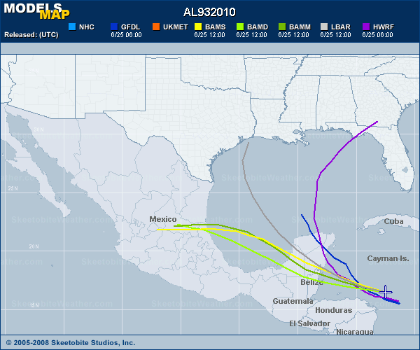 I've had to watch these storms carefully since I moved to New Orleans in 1988, a couple of weeks after I got here Gilbert came into the Gulf and all the meteorologists except one had it turning north and completely destroying N.O., and if it had turned it surely would have. I have gotten very good at picking through the mass of models and predictions on these things, for example I was convinced before almost everyone that Katrina would hit us because I listened to that same meteorologist who said Gilbert, and later Andrew, would miss us. (He's not always right but he tends to call the big ones.) It is probably way too early to worry about a storm of any significant strength affecting the danger zone now. The big scary ones are likely to start threatening the area anywhere from 3 to 5 weeks from now. That's just a guess, but I feel it's a hard earned educated guess. Nevertheless I'm watching the current situation with great interest and apprehension.