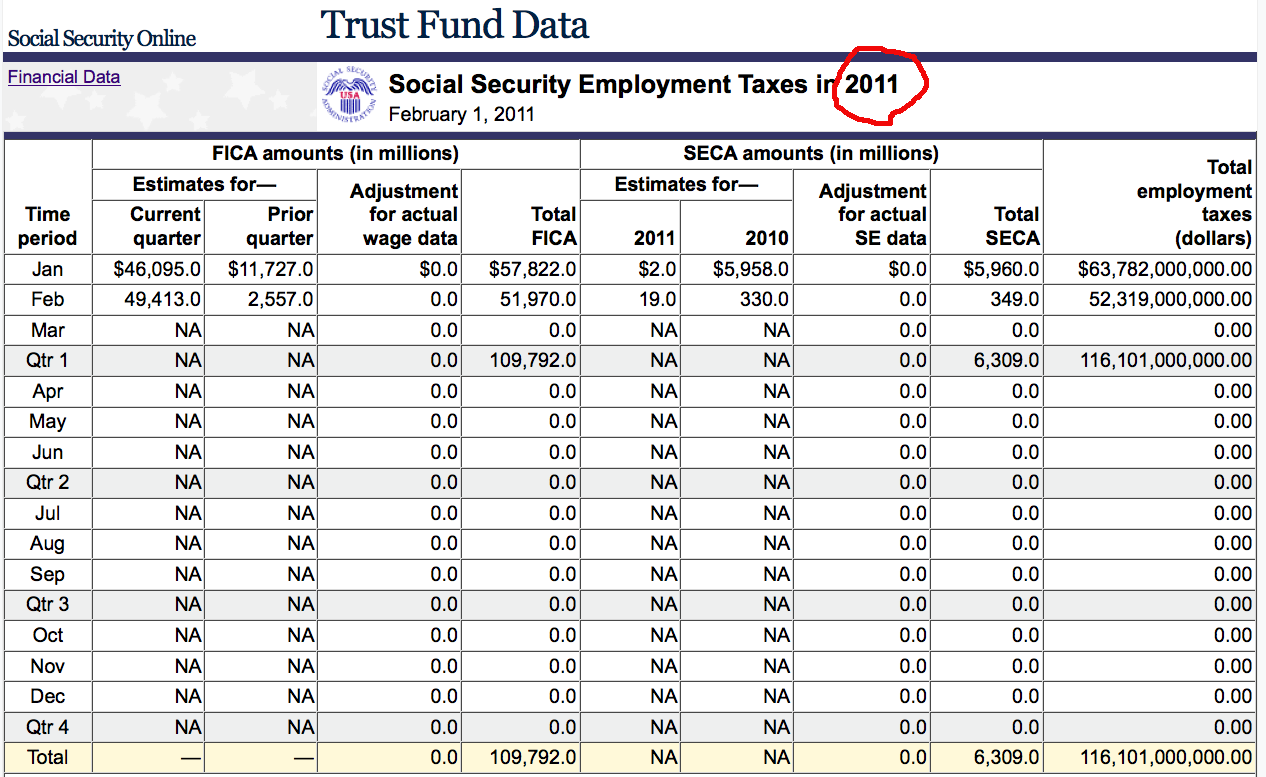 This Friday we get a look at payrolls for January. Today the Social Security Trust Fund released the Payroll tax information for February: