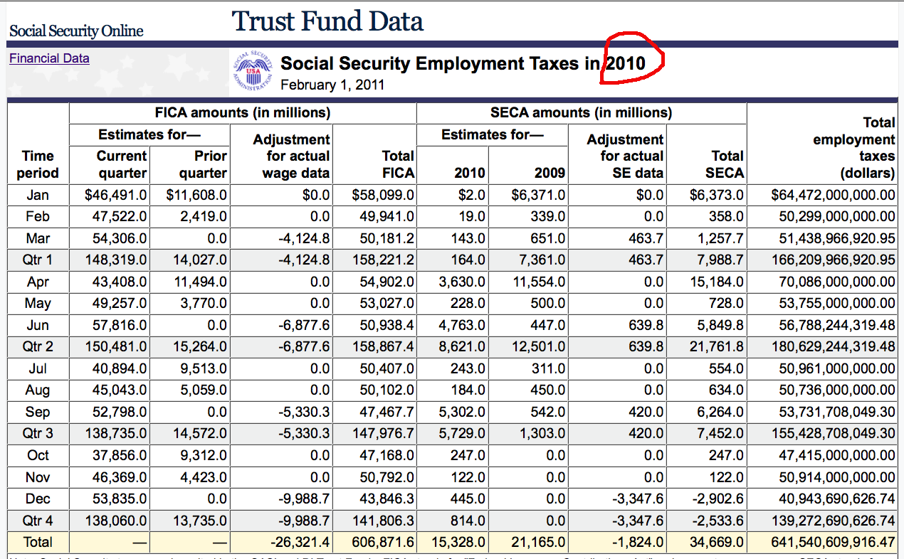Looking at the 2010 $641 billion SS taxes, I couldn't help reflecting on GAAP accounting and the impact that would have on the "reported" deficit. lol. Good work/discipline Bruce, may the force be with you - I'm stuck in the Maya of Wonderland.