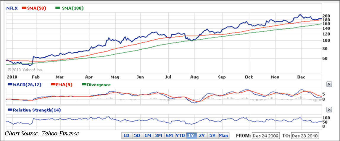 So far, there seems nothing in Netflix`s business model that cannot in some way be outdone, duplicated, or even refined in a more appealing, efficient product offering by a large competitor with much bigger pockets. So, there will be a new momentum stock in 2011, the shorts will no longer be adding fuel to the fire via successive short squeezes, and all fads come to an end as consumers look towards the next cool thing.