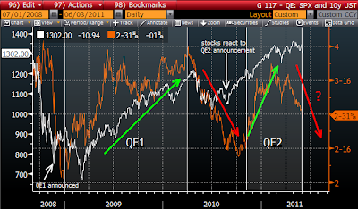 announcement of QE 1 and 2 and bond yields. Rates go up when we have QE,