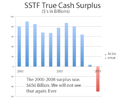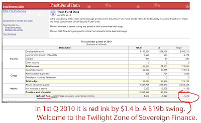 Bruce has been on this all along http://brucekrasting.blogspot.com/2010/03/in-early-january-i-published-p... and IMHO it’s the most important story out there. SSTF - it’s not social, there is no security, there is no trust, and there is no fund – tipping negative is emblematic of the end of ALL the many years of politically inspired BS accounting that has enable the offal, myself included, of our “greatest generation” to monetize America’s three centuries of accumulated goodwill. The end of empires is always ugly – and a warning. Historically, these ends typically come with large scale military defeats.