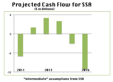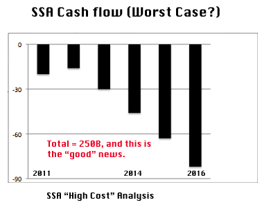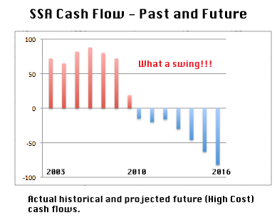 Recognizing the reality of a future of cash deficits the chief actuary of SSA, Stephen Goss, wrote a discussion paper that puts the issue of SSA and Perpetual Deficits squarely on the table. It is not an easy read, two cut and pastes on the cash flow issue that I thought were interesting: