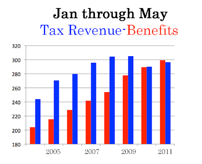 payroll tax revenue to benefits paid. This looks at the first five