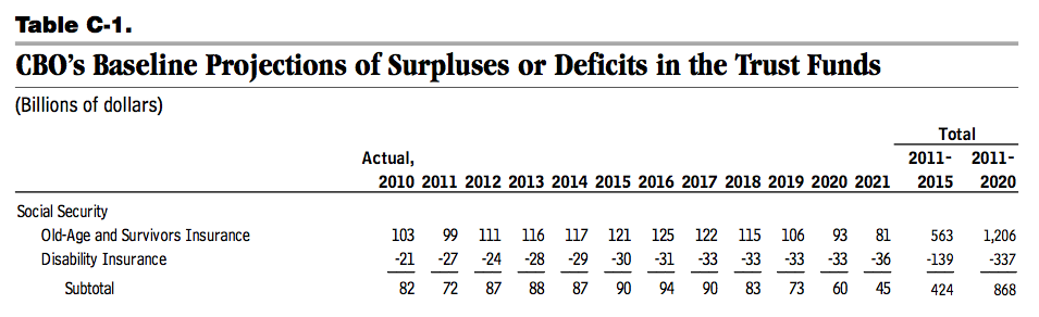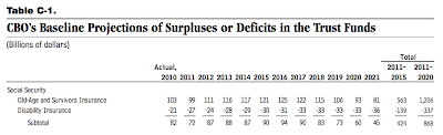 Consider this slide from the CBO. This is their estimate of the surplus at SS all the way out to 2021.