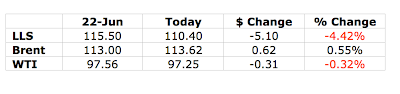 Louisiana Light Sweet (“LLS”) pricing. I have been pounding the table