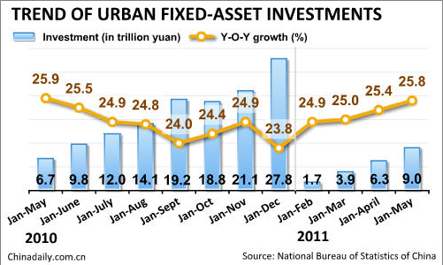 Urban fixed asset investment rose to 9.03 trillion yuan ($1.39 trillion) in the first five months, up 25.8% year-over-year (See Chart), while investment in residential housing reached 1.33 trillion yuan, up 37.8% from the same period last year. This has partly contributed to the current escalating inflation in China.