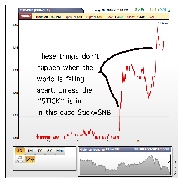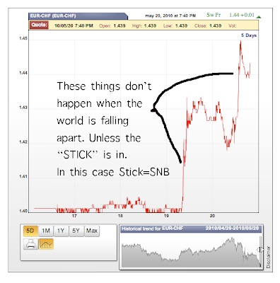 I would guess that Hildebrand got bitch slapped by Trichet and possibly Geitner, after all the Swiss banks have apparently benefited enormously through the Greek bailout since some (unsubstatiated, think Reggie) articles claim that the Swiss banks have massive amounts of sovereign Greek debt on their books.