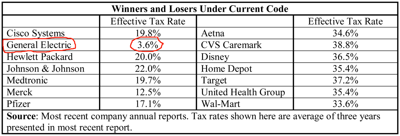 GE is a MNC, not a US corporation. GE has more employees outside the US then inside and GE can park its revenues in any number of tax free foreign subsidiaries. A change in the US tax code would be negligible to them and many other MNCs.