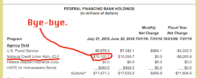 So they liquidate $15b face value, spread $9.2b of losses on that on the credit unions, and create a "bad bank" that holds $35b face value of these assets and sells $35b in bonds, nominally backed by the assets but actually backed by the Federal government. Reminds me of what China did with its banks' bad debts in their last crisis. So I guess Tim's learning from the finance masters.