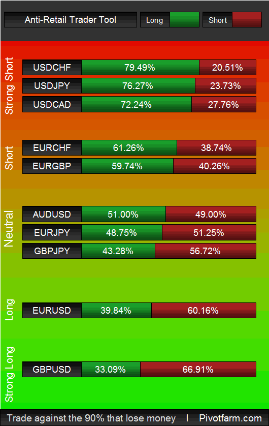 Increasing market volatility is leading to more decisive trading action by traders, with the number of pairs now in the neutral zone at a 3 month low. There are a couple of market moving events today that could have a strong influence on the report heading into the weekend. At 08:30 EST we have US Durable Goods Sales followed by New Home Sales at 10:00, both events have the potential to cause shifts in retail trader positioning.