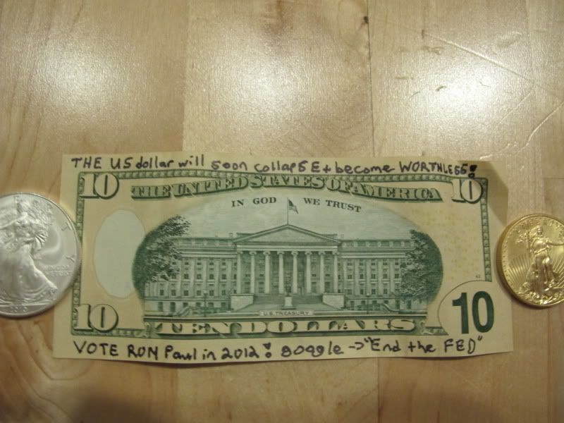 At that point, I will trade some of my gold for land, rental property, etc, assuming we are deeper into the depression than we are now, and thus prices are suppressed well below where they are now. Once I see signs that the government will stop interfering in the markets, either as a result of a Ron Paul or similar presidency, or as the final result of a revolution, then I will also invest in stocks. I will never invest in bonds, because I don't believe in credit. If you are worthy of credit, then you can start smaller based on your savings and work your way up with profit reinvestment.