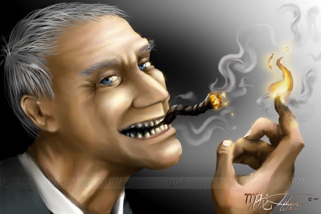 With all the success the US economy is having, Mr. Bernanke asks the chief to humor him by assisting in promoting him to Fed chairman, guaranteeing continued success. Besides, since the devil is not real, Alan shouldn't have a problem with it. Alan hesitates, but Mr. Bernanke goads him by saying, "Imagine a grown man believing in the devil!" More importantly, Mr. Bernanke has modified the Central bank's linotype machine so that whatever interest rate is set in type subsequently happens.