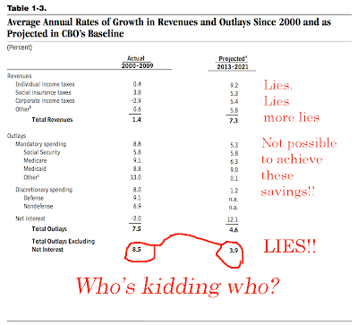 Douglas Holtz-Eakin admitted in an interview that the totally impartial CBO use all manner of tricks to jig the projections…for totally impartial motives. Here is a neat little trick he recalls - increase the projection of wage inflation, then from this projection calculate how many people will move up through tax brackets, hence you have a brand new revenue stream which the government can borrow from (genius). Totally impartial. The CBO has turned into a sham, when they are surplus to government requirements they will be finished because they pimped out their credibility years ago. They’re only function now is to justify spending with fucking voodoo bullshit.