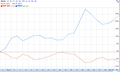 My guy’s defensive tactics worked very well in September. I think there was some of the biggest % moves in history in bond land. Consider this chart. Zeros were up 25% while the S&P was down 8%.