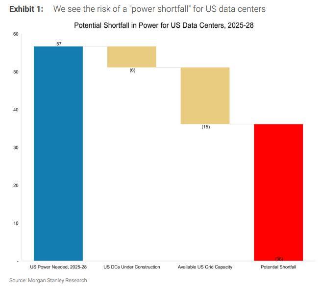 Recall, last December Morgan Stanley calculated that the US would need at least 36GW in new power to be brought online by 2028 to energize all the (yet to be built) data centers, a number which one year later is surely far higher.