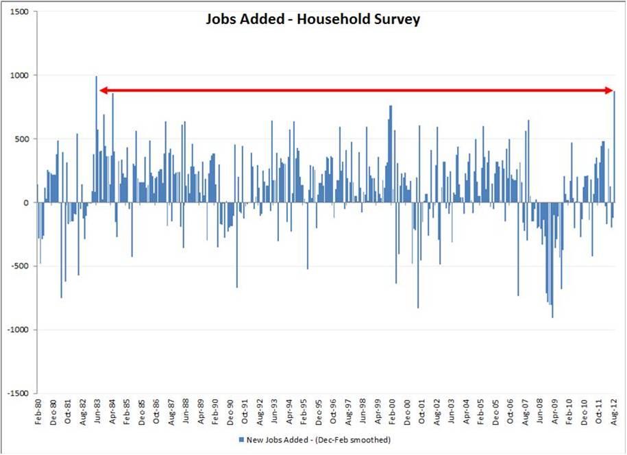 I've got another aberration for you. 873K jobs added last month - the highest job growth in the last 30 years? I can't believe that they have the gall to stand by these numbers.