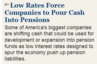 The WSJ just removed a story from its front page regarding the true cost of QEternity -- underfunded corporate pensions! It is now becoming an economic ball and chain on those big corporations that it was intended to benefit!