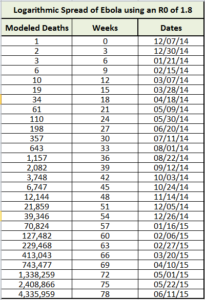 "Ebola fomula 2^(x/21). If something doesnt change soon all our problems will be solved in only 320 more days +/- 90" - previously on ZH from someone that deserves full authorship.