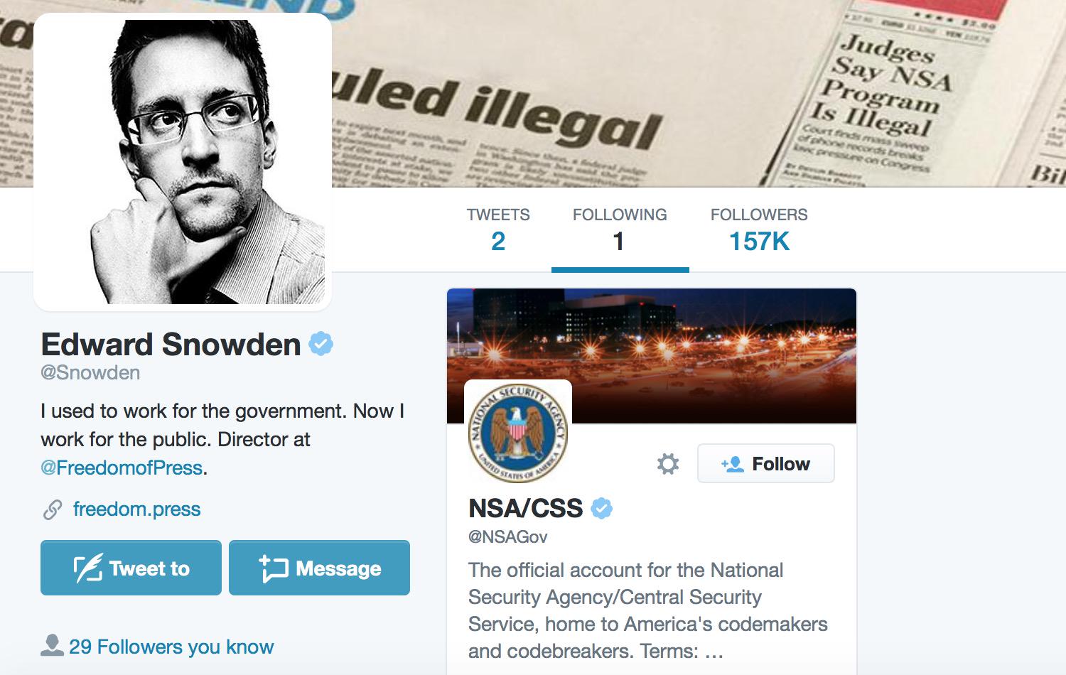 The only account Snowden is keeping an eye on? Why the NSA's of course...