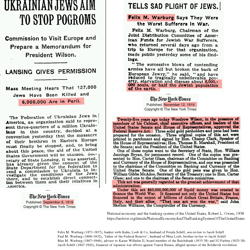 NYT, 1919: Felix M. Warburg, brother of Paul M. Warburg, "the father of the Federal Reserve", qouted:
