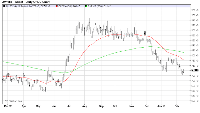 Sure the fundamentals are underlying these moves, and with high prices over most of the last 4 years, soaring farm land prices, and wealthy and fat farmers, things have been good in the agriculture space, and this probably plays out in some bumper crops if the weather cooperates. This is economic theory playing out putting downward pressure on Wheat prices.