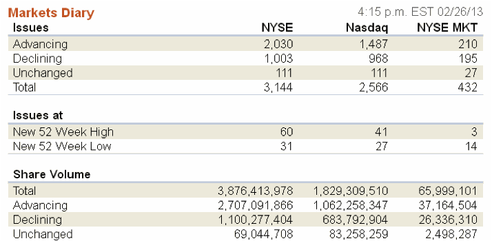 Stocks rallied led by the Dow (DIA) and S&P (SPY) as Home Depot (HD) and other heavyweights spurred bulls including (IBM), (CVX), (BA), (XOM) and (UTX). Read more about (SPY) and the sequester [19] from one of our valued contributors, David Gillie.