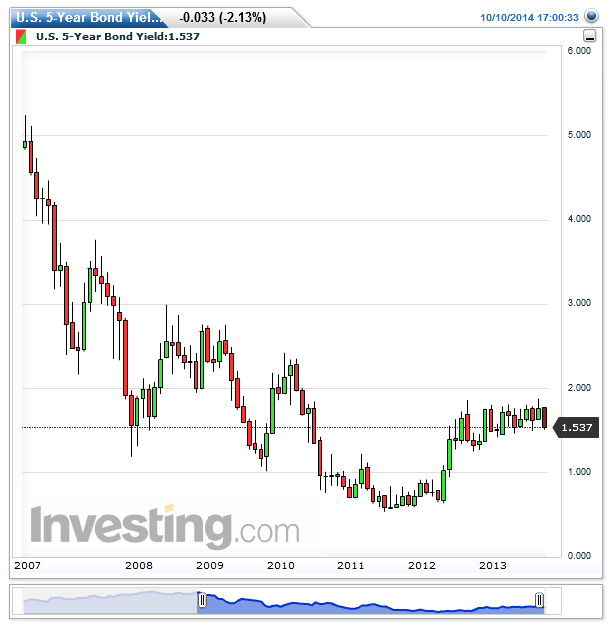 Literally the 5-Year Bond has to be one of the ill-advised investments in the history of stupid investments by speculators who bought this bond the past week. There is no way in hell this is sound risk reward investing, it isn`t even sound speculating. It is the most idiotic place one could store one`s money, and is indicative of what James Bullard and many see as major problems ahead for these speculators in the bond market induced by ZIRP borrowing costs. These investors will literally pick up pennies in front of a massive steamroller, more money has been lost chasing yield in the history of financial markets than any other mainstream trading strategy. It is amazing how risky and stupid speculators can be when their gains are rewarded by profits and fat bonuses and theirs losses are subsidized by bank bailouts!