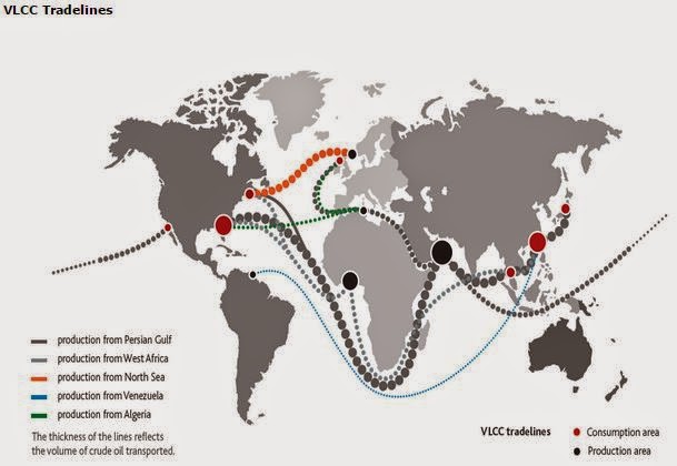 The VLCC's are known for their ability to pass through Suez and are heavily used in the North Sea, Mediterranean region, and West Africa. A company called Frontline of Bermuda owns 44 of these ships and is the largest owner in the world.