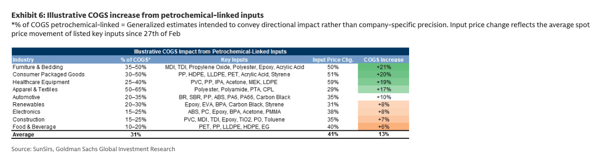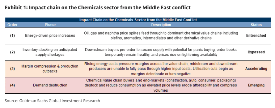 Goldman analysts, led by Georgina Fraser, warned clients on Monday that the petrochemical shock is worsening across Asia, with textile and packaging plants emerging as the first major downstream casualties.