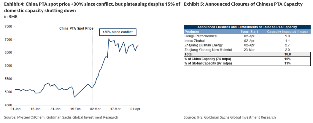 At the same time, about 15% of China's PTA capacity and 11% of global capacity have been taken offline due to shutdowns and curtailments.