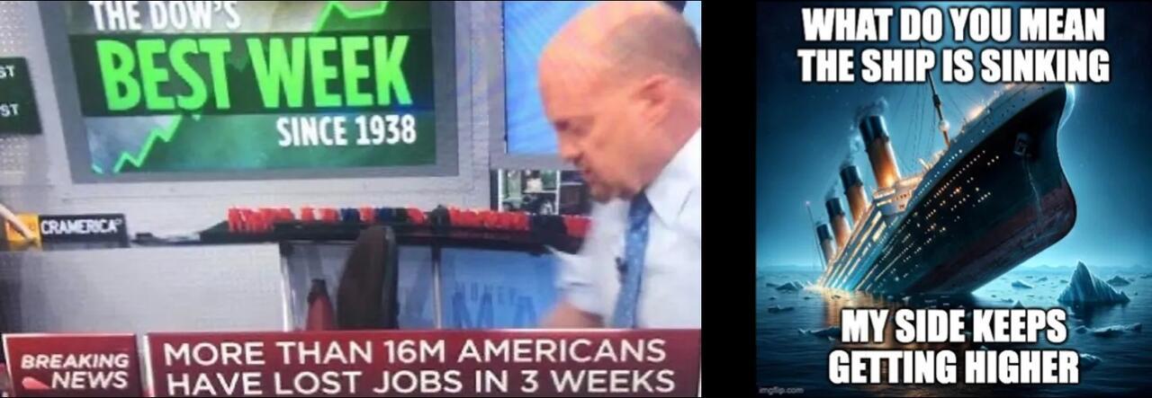 The good news is I know it’s rigged. The government is [saying] don’t worry we’re just gonna create a trillion-billion-zillion dollars. It’s fantasy land. It’s Schrute Bucks [fake money from a popular TV show]. It’s the worst coronavirus day in a while and the government is saying don’t worry about it cause we’re gonna print a quadrillion dollars and the market sky rockets. The stock market is disconnected from reality. The whole thing is a pyramid scheme. We’re living in the Matrix.