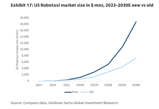 Delaney's new estimate for the U.S. robotaxi market is set to top $19 billion by 2030, up from a prior $7 billion forecast, and continue rising to $48 billion by 2035.