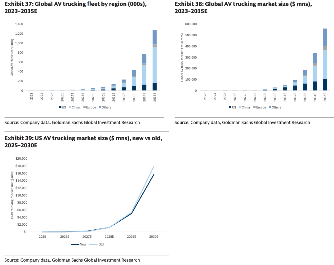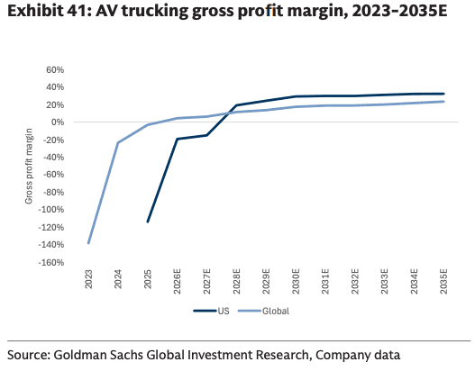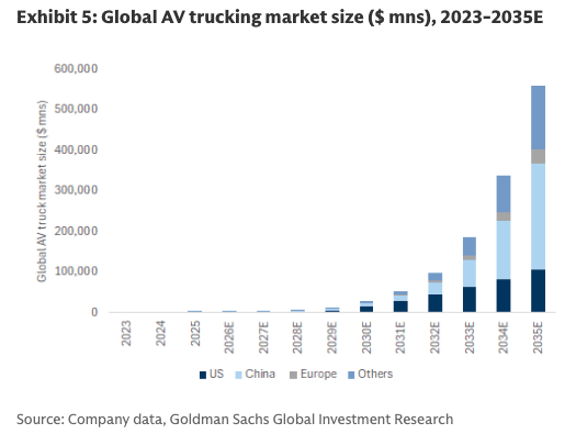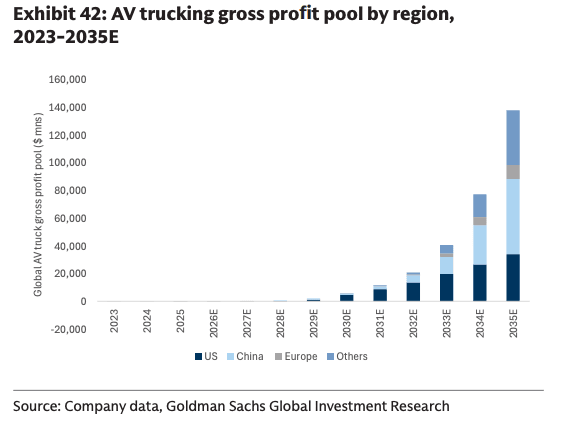 "Overall, we expect these improving cost dynamics and scaling up of the AV trucking fleet to drive an increase in the global gross profit pool for AV trucking from close to zero in 2025 to ~$135 bn in 2035," the analyst noted.