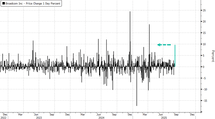 The market reaction in premarket trading sent Broadcom shares in New York up by more than 9%. If these gains are held into the cash session, this would make the largest daily increase since shares jumped nearly 20% in early April. Year-to-date, shares are up 32% (as of Thursday's close).