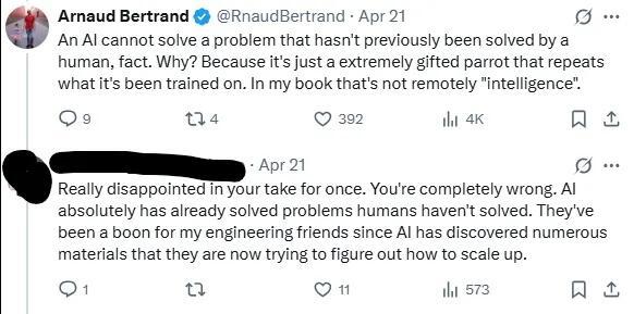 About 2 months ago I was having an argument on Twitter with someone telling me they were “really disappointed with my take“ and that I was “completely wrong“ for saying that AI was “just a extremely gifted parrot that repeats what it's been trained on“ and that this wasn’t remotely intelligence.