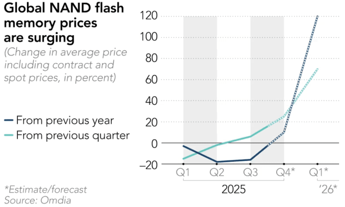 "Demand from servers and AI is extremely strong, and we expect NAND flash prices to continue rising sharply through 2026," P.S. Pua, CEO of Phison Electronics, a major developer of NAND flash memory controller chips, told Nikkei Asia.