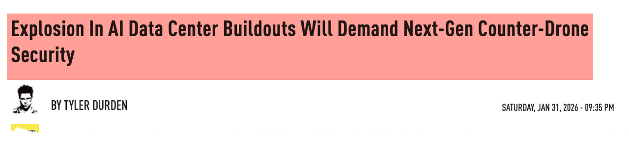 We first outlined the theme in a late January note titled "Explosion in AI Data Center Buildouts Will Demand Next-Gen Counter-Drone Security."