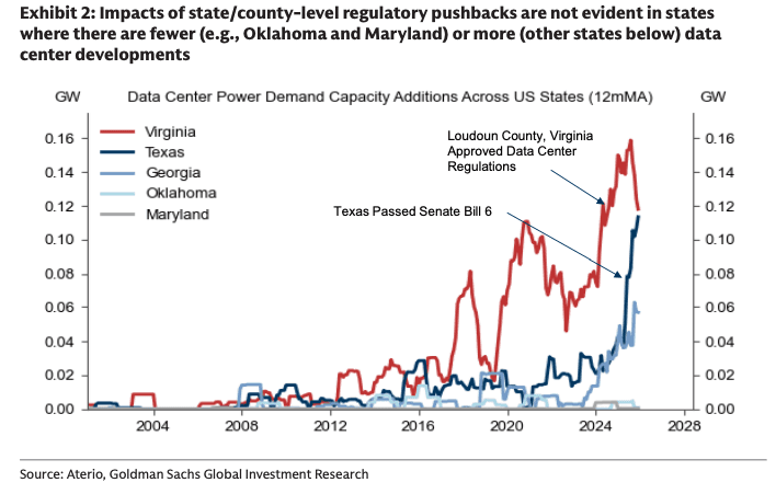 Conversely, we believe state-level regulations that enhance power affordability and reliability could lead to a more favorable environment for accelerated data center developments, as Texas has started to demonstrate (Exhibit 2).