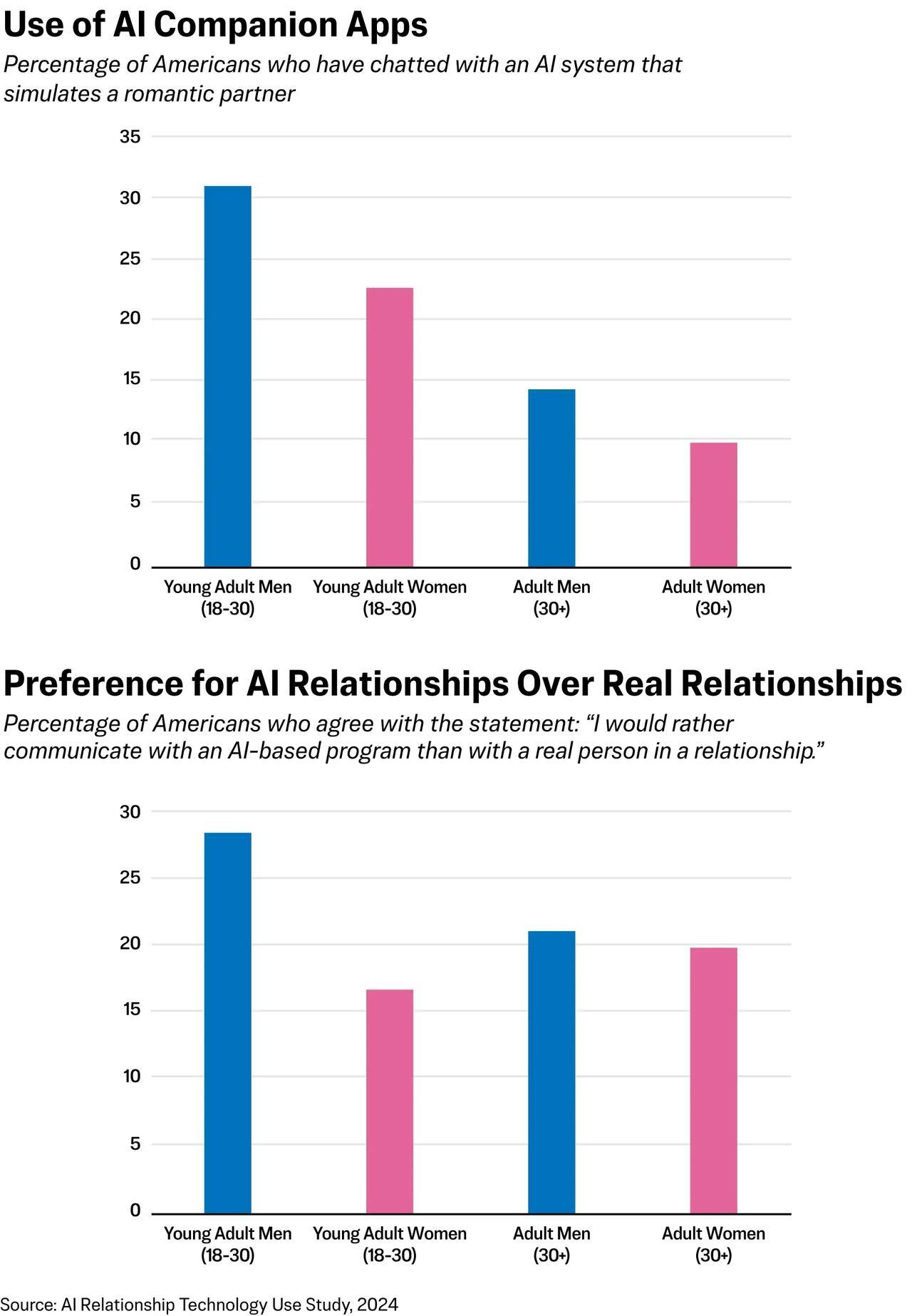 Roughly 19 percent of U.S. adults reported using an AI system to simulate a romantic partner, according to a 2025 study by Brigham Young University’s Wheatley Institute. Within that group, 21 percent said they preferred AI communication to engaging with a real person.
